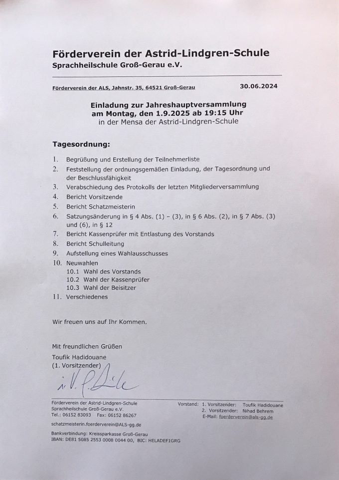wir laden Sie, Eltern und Lehrkräfte, herzlich zur Jahreshauptversammlung vom Förderverein der ALS ein.